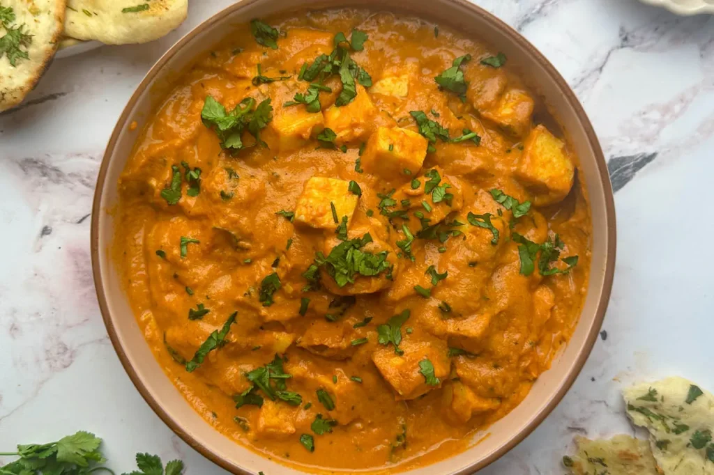 Paneer Butter Masala: Soft paneer in a rich, creamy tomato gravy with mild spices.